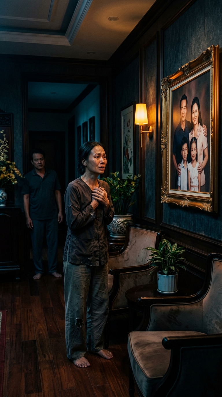 Đêm hôm ấy, khi cả nhà đã ngủ, Minh vô tình đi ngang qua phòng khách và bắt gặp Hồng đang đứng lặng trước bức ảnh gia đình anh treo trên tường. Trong ánh sáng mờ, gương mặt cô thoáng run rẩy, đôi môi mấp máy: