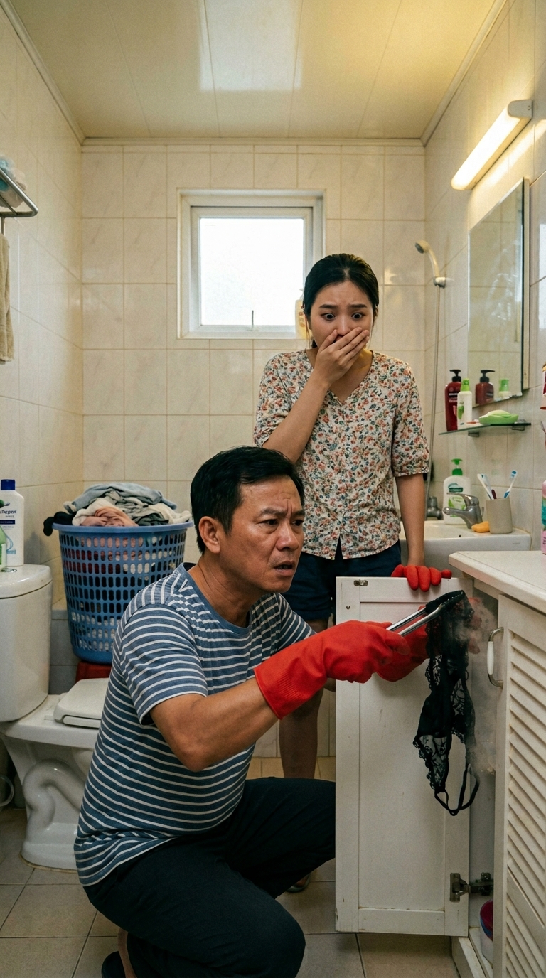 “Anh biết em không tin. Nhưng nó say thật, anh không làm gì. Anh chỉ cố mặc lại quần cho nó nhưng không được, nên anh bỏ vào thùng rác. Sáng hôm sau nó tỉnh, anh không dám nói gì vì sợ em hiểu lầm. Anh gom đồ rác lại định mang đi, không biết sao lại lẫn vào bồn cầu…”