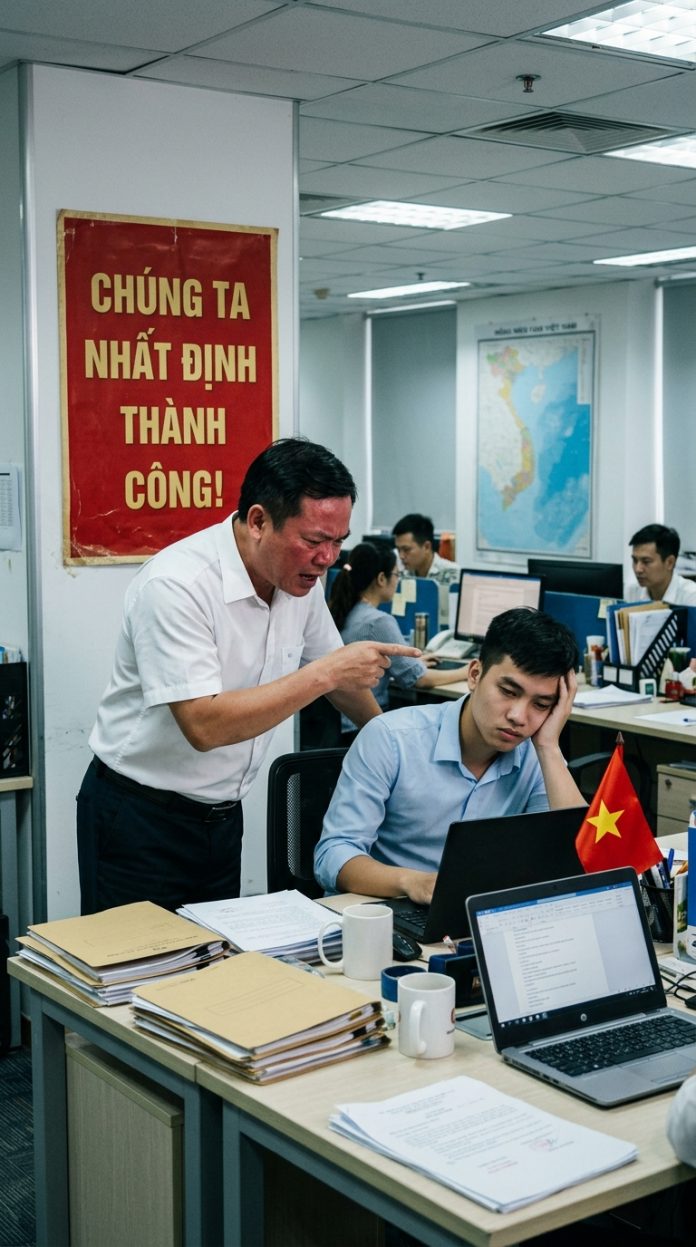 Buổi chiều hôm đó, trưởng phòng gọi Thành vào văn phòng. Không khí căng thẳng, Dũng đứng bên ngoài cửa, nở nụ cười tự tin, nghĩ rằng lần này có thể uy hiếp “nhân viên mới”.