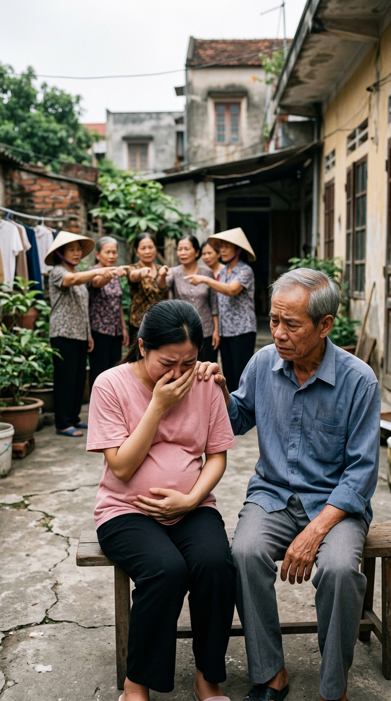 Ông Thọ im lặng. Ông nhìn bà Hường, nhìn Nhi đang ôm bụng, nước mắt giàn giụa. Mãi sau, ông mới thở dài: