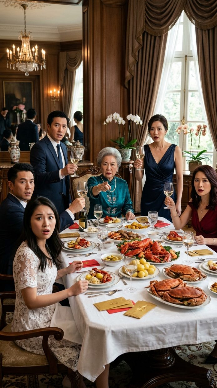 Nhà hàng họ chọn đúng kiểu sang chảnh: đèn vàng, nhạc nhẹ, bể hải sản lớn. Vừa ngồi xuống, mẹ chồng phẩy tay: