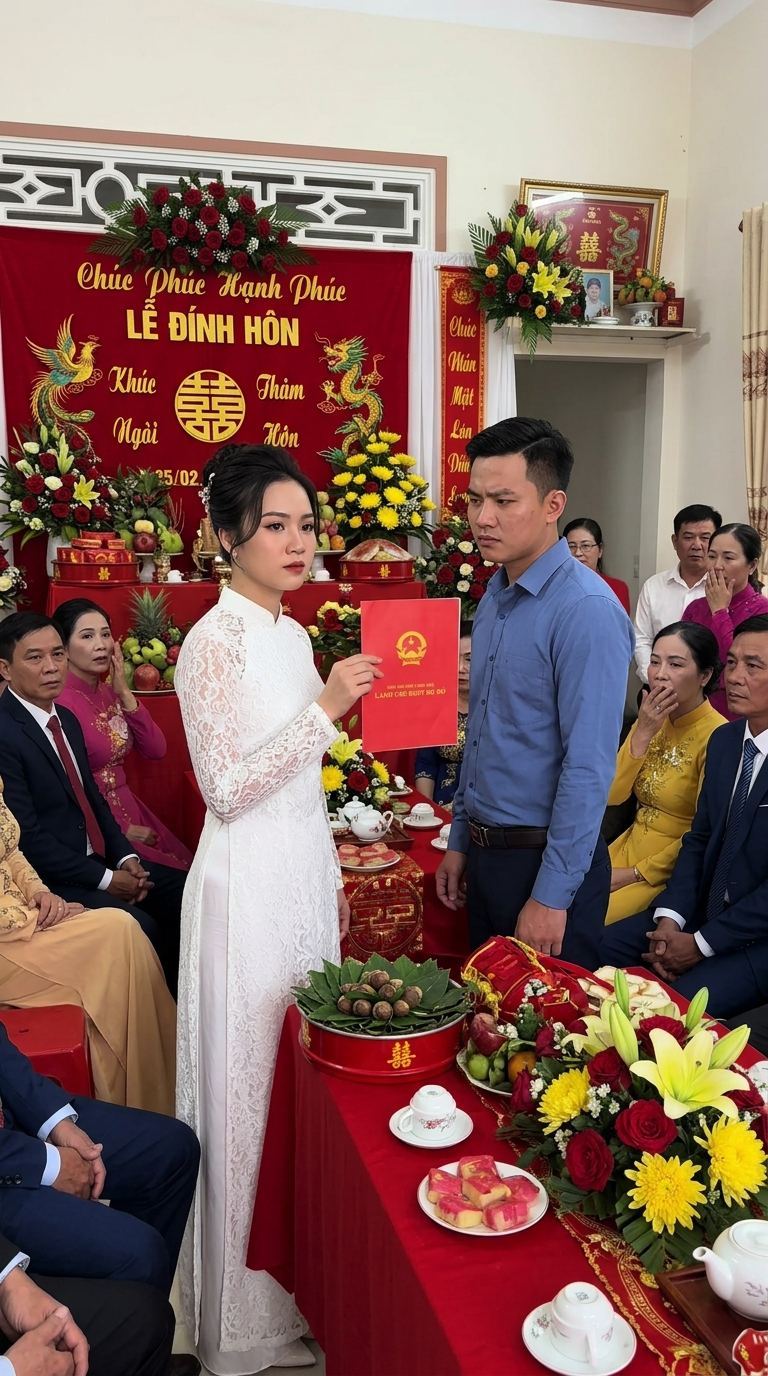 Nhà trai mở giấy tờ, vừa nhìn đã hiểu ra. Không khí lập tức thay đổi. Cha mẹ chàng rể đứng lên, mặt nặng trĩu: