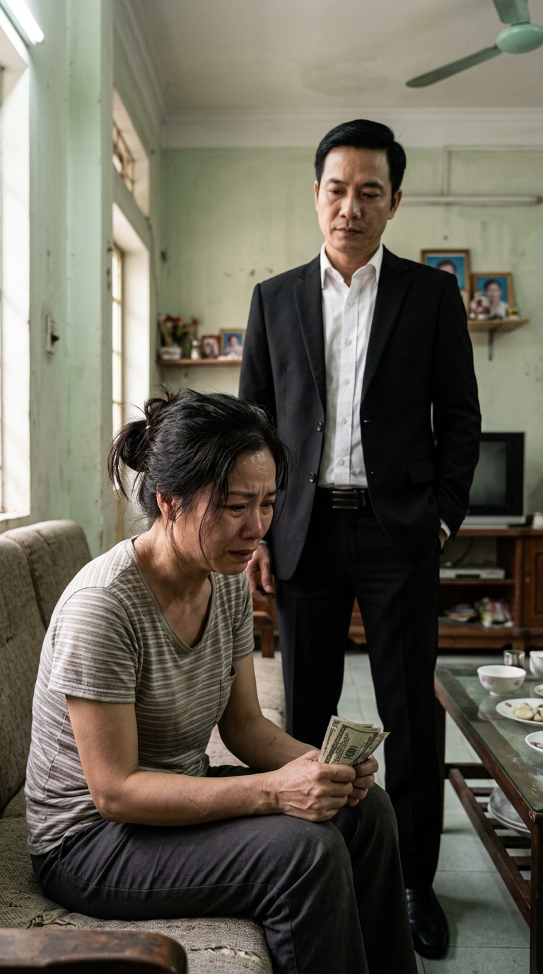 Tôi run cầm cập đếm số tiền mặt: đúng 50 triệu đồng – số tiền tôi đang cần gấp để nộp tạm ứng viện phí. Nhưng thứ làm tôi quỵ ngã thực sự là dòng chữ viết tay trên mảnh giấy: