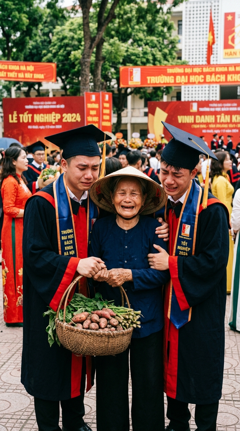 Con trai tôi quay lại. Nụ cười trên môi nó bỗng khựng lại. Đôi mắt nó mở to, nhưng không phải vì mừng rỡ, mà là một sự hoảng hốt đến lạ lùng. Nó nhìn tôi, rồi nhìn sang những người bạn đang đứng cạnh – những người đang xì xào: “Ai vậy Thành? Người nhà cậu à?”.