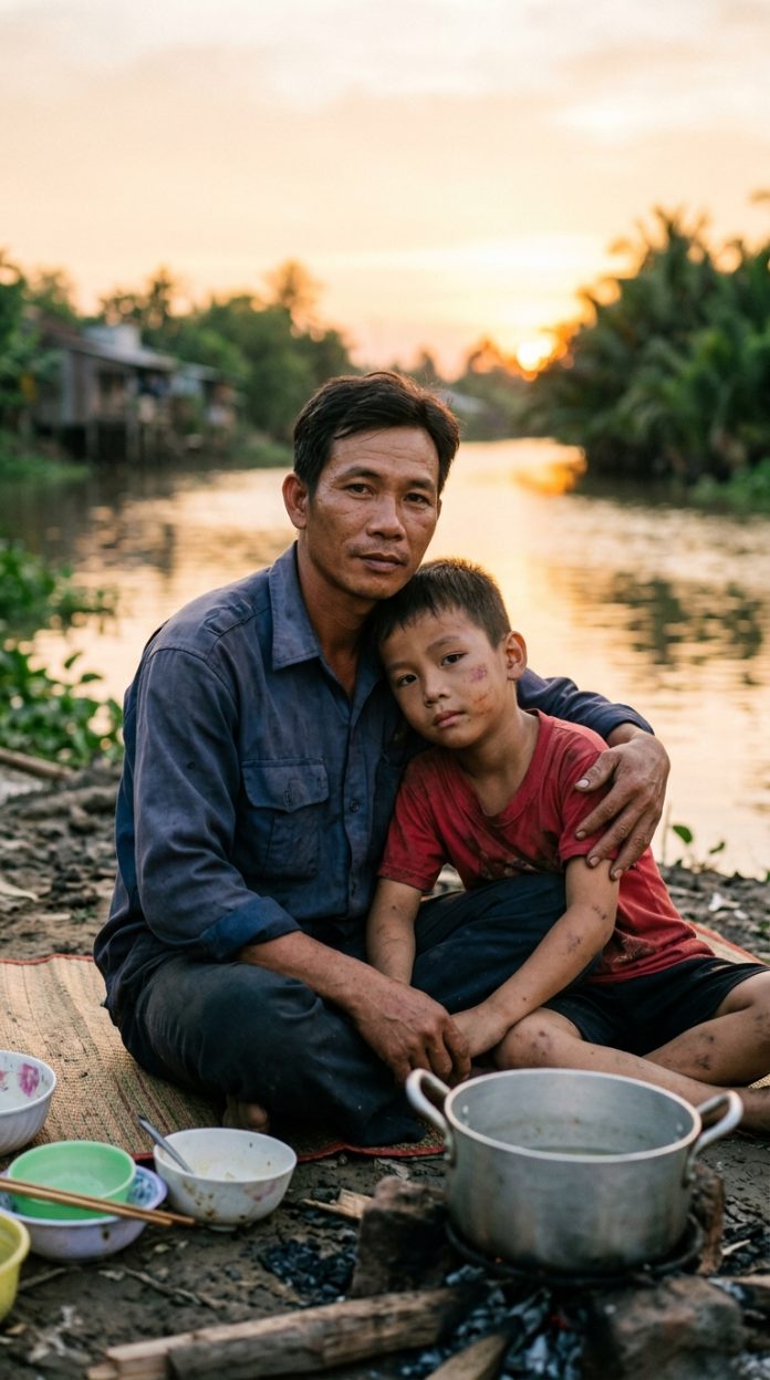 – Con yên tâm, bố ở đây rồi… – Huy thì thầm, giọng nghẹn lại.