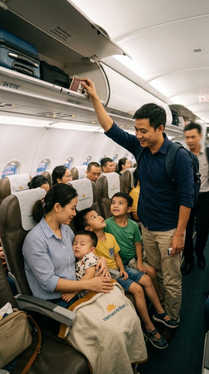 Lâm Khánh lạnh lùng nhìn về phía Mai, giọng nói trầm thấp nhưng đầy uy quyền: “Tôi muốn nói chuyện riêng với vị hành khách nữ đang ngồi ở hàng ghế phía trước, cùng với ba đứa trẻ. Ngay lập tức.”
