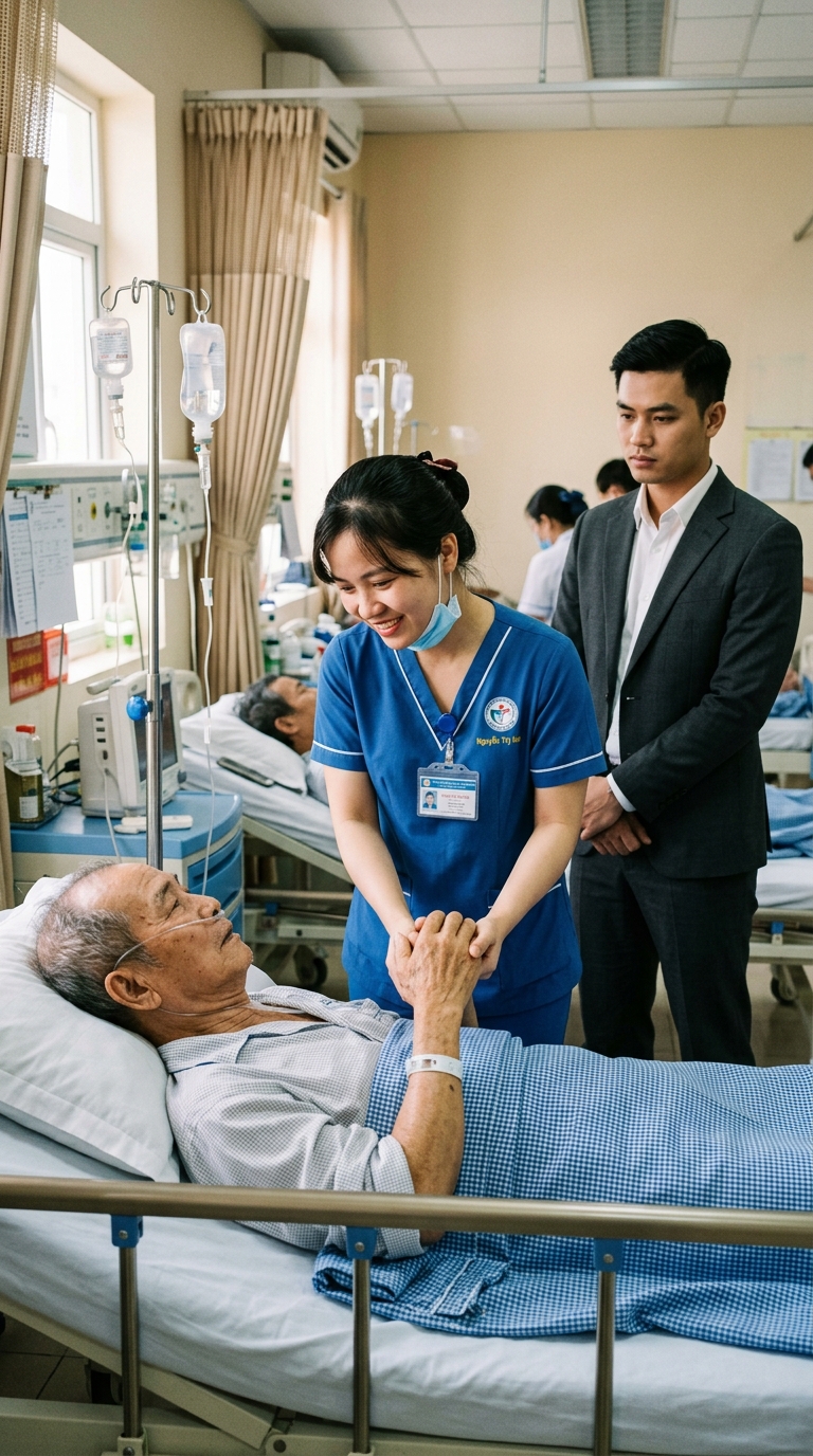 Tối đó, khi Yến chuẩn bị bàn giao ca, ông Khánh bỗng gọi tên cô. Giọng ông tuy còn yếu nhưng đầy kiên quyết: