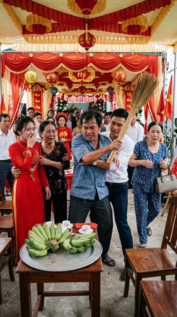 – Đủ rồi! Các người bước chân vào nhà tôi mà ăn nói kiểu đó à? Mang hai quả chuối với hộp kẹo sang rồi bảo là đi dạm ngõ? Các người nghĩ nhà tôi là cái chợ?