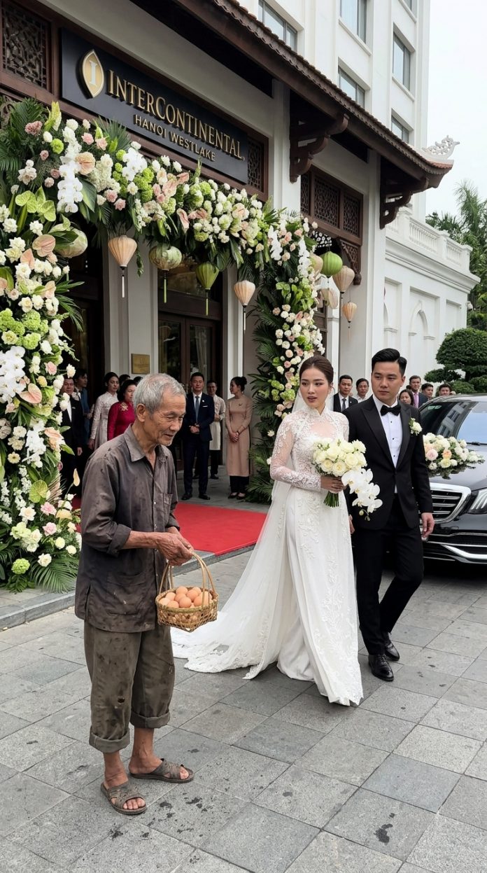 Lễ cưới xa hoa được tổ chức tại khách sạn 5 sao giữa trung tâm thành phố. Cô dâu lộng lẫy như công chúa, chú rể là người thừa kế duy nhất của một tập đoàn tỷ đô. Nhưng ngay trước giờ cử hành hôn lễ, một ông lão lọm khọm, áo quần rách rưới, tay ôm rổ trứng gà, xuất hiện trước sảnh tiệc.