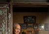 Bà Tính ngồi trên xe lăn, lặng lẽ nhìn theo, trong...