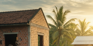 Cách đầm tôm của ông không xa là căn nhà lụp...